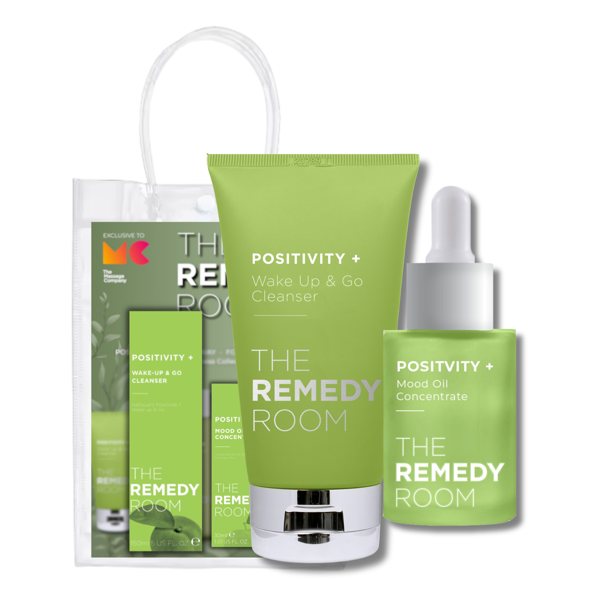 Positivity+, start the day with a cleanse of clarity, a zingy facial cleanser to wake up your skin. Follow with a refreshing skin and mind Mood Oil concentrate, which acts as your daily skin serum and pulse point booster throughout the day.